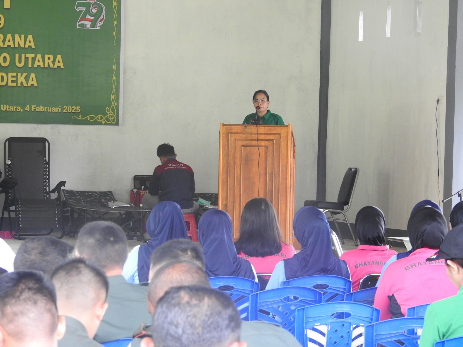Dalam sambutannya, Ketua Persit KCK Cabang LXXI Kodim 1314/Gorut, Ny. Pretty Rayner D.R. Wajong, menyampaikan bahwa aksi donor darah ini merupakan bentuk kepedulian Persit dan Kodim 1314/Gorut terhadap masyarakat.