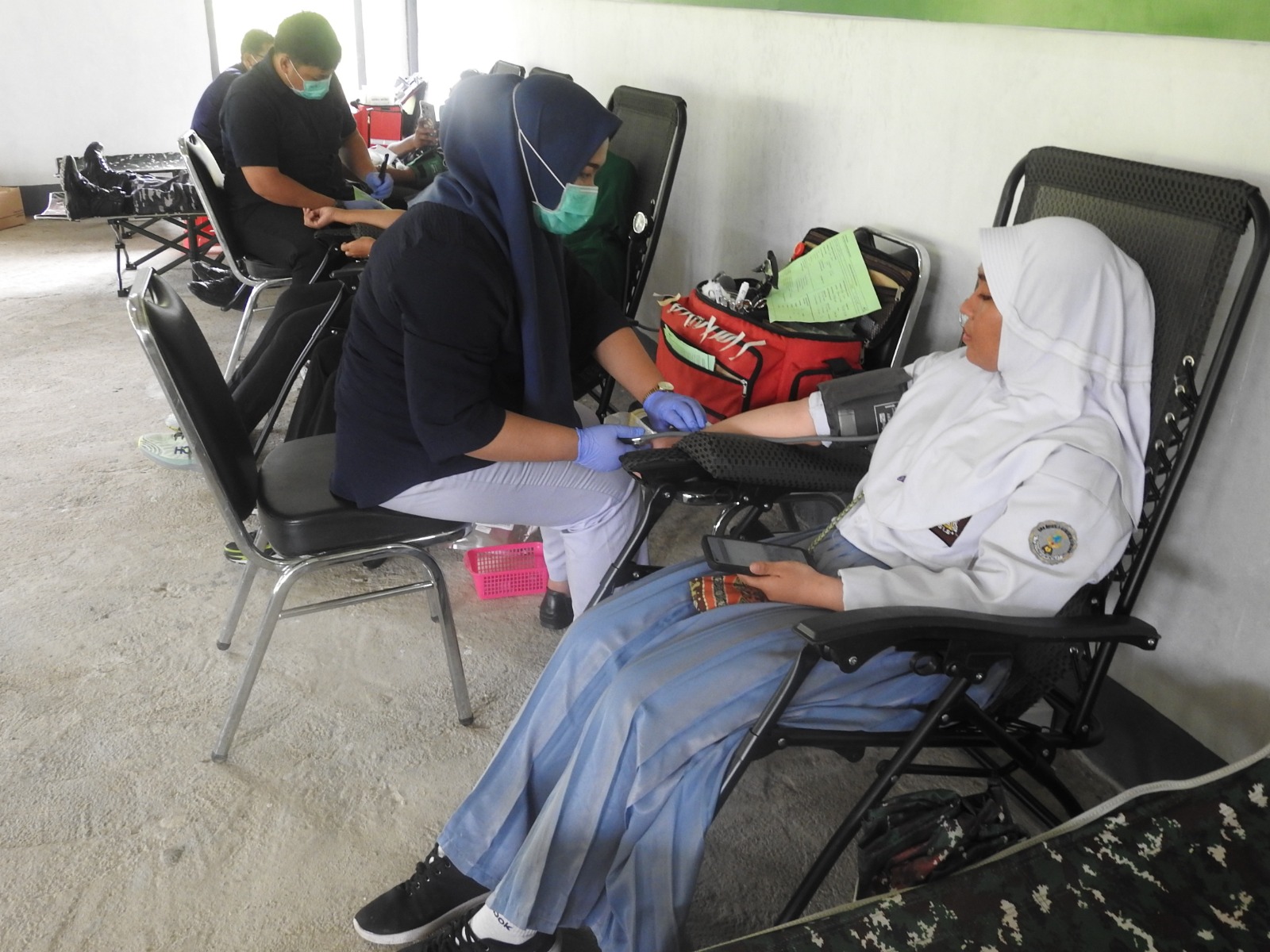 Proses donor darah diawali dengan pengisian lembar biodata, dilanjutkan dengan pengecekan kadar hemoglobin (HB), dan diakhiri dengan pelaksanaan donor darah. Sebanyak 85 orang berhasil mendonorkan darah mereka, terdiri dari 35 anggota Kodim, 4 anggota Polres, 4 personel Angkatan Laut, 31 anggota Persit, 2 anggota Bhayangkari, serta perwakilan dari FKPPI, Hipakad, ASN Pemda, dan siswa SMA. Namun, sebagian peserta tidak dapat mendonorkan darah mereka karena kondisi kesehatan, seperti tekanan darah tinggi dan sakit.