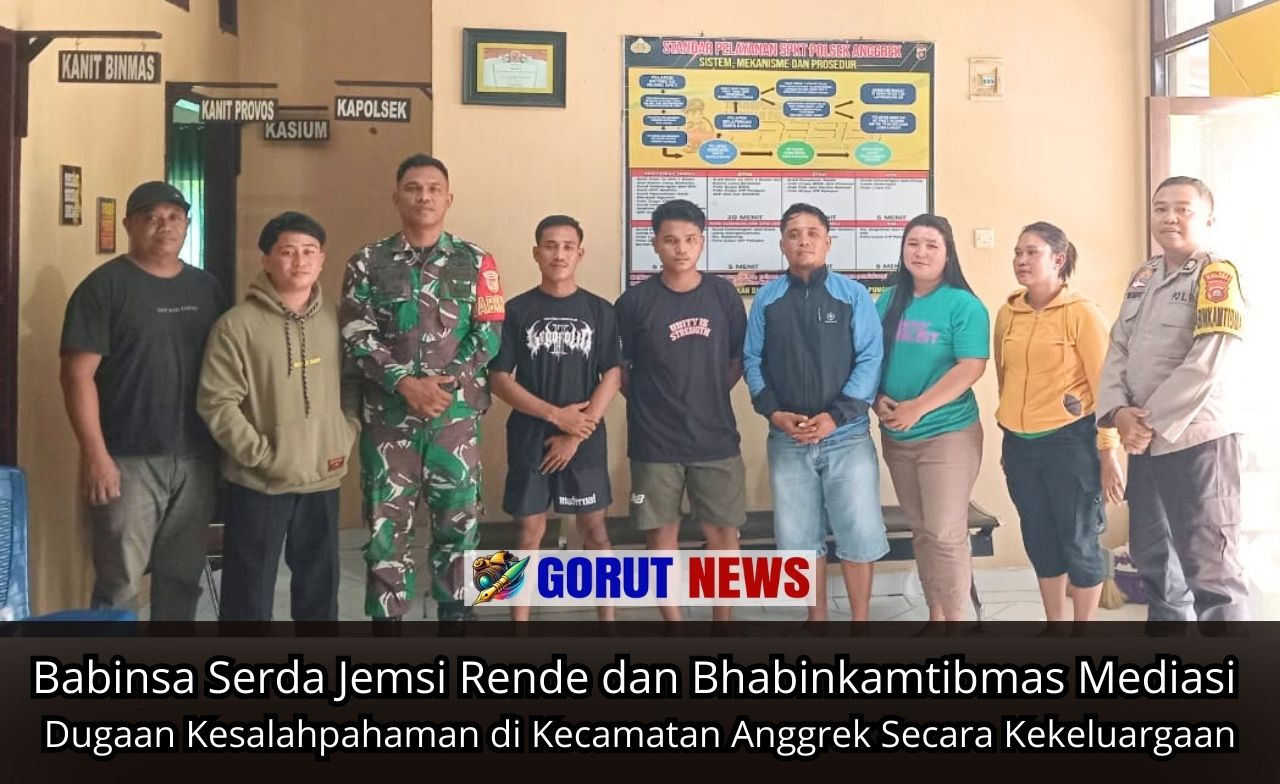 Gorutnews.com – Babinsa 1314-01/Kwandang, Serda Jemsi Rende bersama Bhabinkamtibmas Brigadir Ridwan Korompot berhasil memediasi penyelesaian kasus yang beredar di Media sosial yang mencurigai adanya dua anak muda yamg mendorong Motor karena kehabisan bensin pada dini hari sehingga masyarakat menduga hal tersebut adalah pencurian motor, sehingga dapat di selesaikan secara kekeluargaan di Kantor Polsek Anggrek, Gorontalo Utara, Sabtu (4/1/2025).