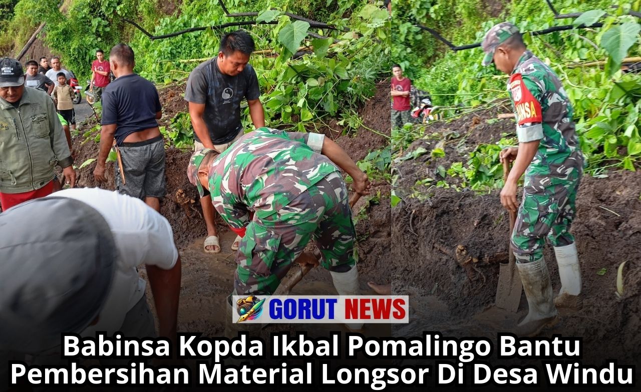 Gorutnews.com – Babinsa Kopda Ikbal Pomalingo dari Koramil 1314-03/Sumalata bersama masyarakat melaksanakan pembersihan material longsor di Desa Windu, Kecamatan Biau, Kabupaten Gorontalo Utara.