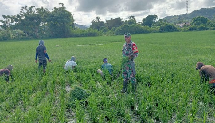 Babinsa Koramil 01/Kwandang Pratu La Alimanto Bantu Petani di Desa Mootinelo