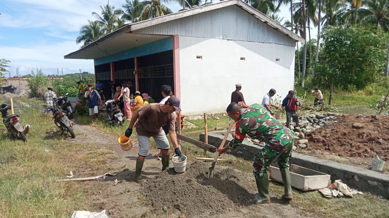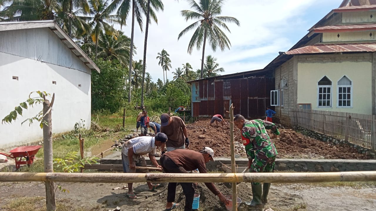 Babinsa Koramil 1314-03/Sumalata Laksanakan Karya Bakti Renovasi Masjid
