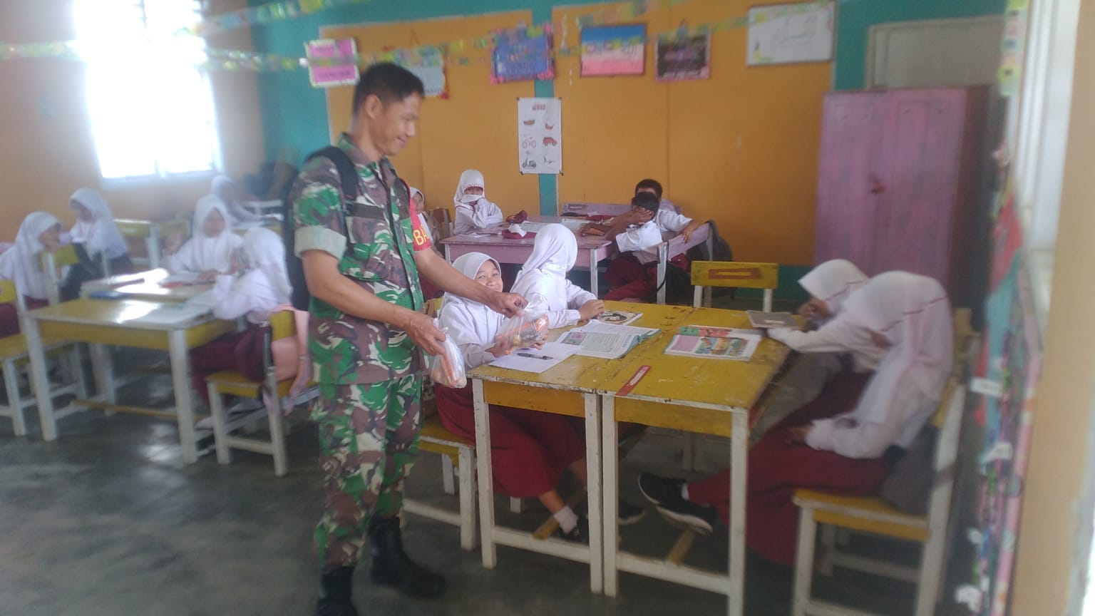 Gorutnews.com – Babinsa Koramil 1314-01/Kwandang, Sertu Lamin Badung dan Praka Endri, menggelar kegiatan sosial dengan menyalurkan makanan bergizi gratis kepada siswa-siswi di tiga sekolah di Kecamatan Kwandang, Kabupaten Gorontalo Utara pada Senin (17/3/2025).