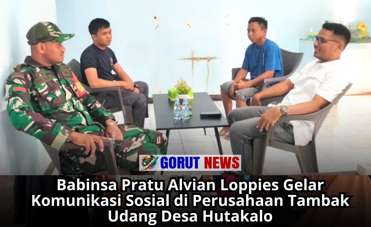 Gorutnews.com – Babinsa Desa Hutakalo, Pratu Alvian Loppies melaksanakan kegiatan komunikasi sosial (Komsos) dengan pengelola perusahaan tambak udang di Desa Hutakalo, Kecamatan Sumalata, Kabupaten Gorontalo Utara, Senin (13/1/2025).