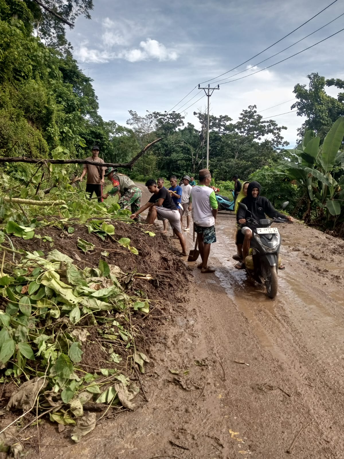 Setelah berkoordinasi dengan aparat desa, Serda La Armaga turut serta bersama warga dalam upaya pembersihan material berupa tanah, batu, dan kayu. Aksinya membuahkan hasil dengan dibukanya kembali akses jalan, memungkinkan kendaraan roda dua dan roda empat dapat melewati lokasi longsor.