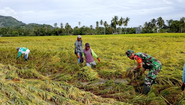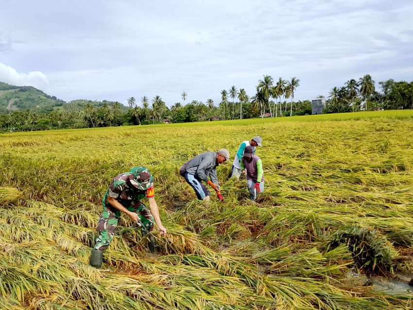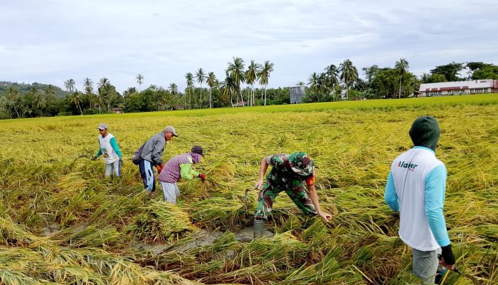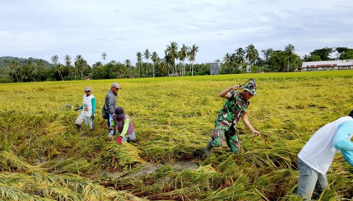 Gorutnews.com – Babinsa Koramil 1314-02/Atinggola, Serma Mody Hardi Mewengkang, melakukan pendampingan ketahanan pangan dengan mendampingi Kelompok Tani Mekar dalam panen padi di Desa Motomingo, Kecamatan Gentuma Raya, Kabupaten Gorontalo Utara, Rabu (12/2).