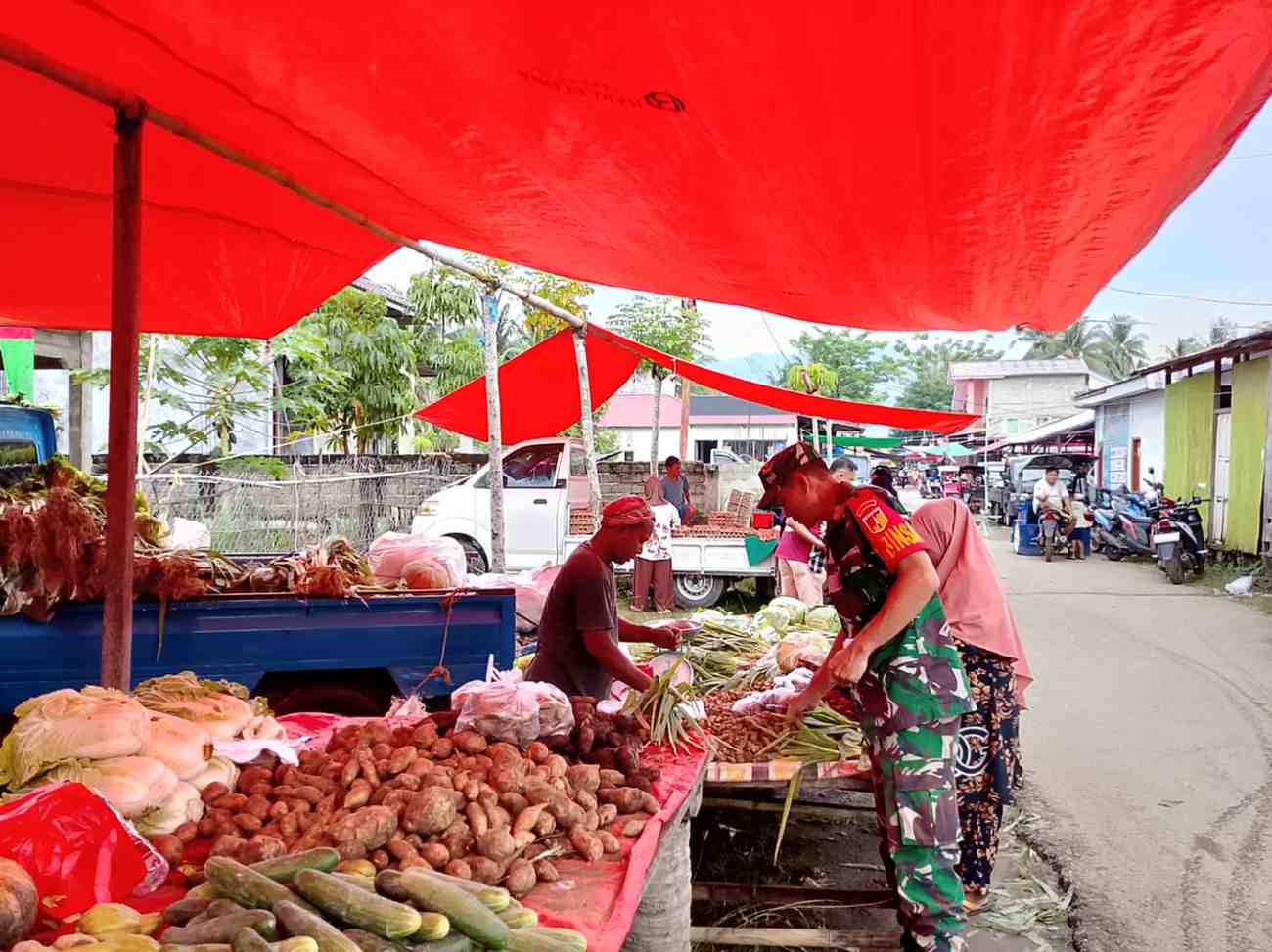 Babinsa Serma Mody Hardi Mewengkang Lakukan Pengecekan Harga Sembako di Pasar Gentuma