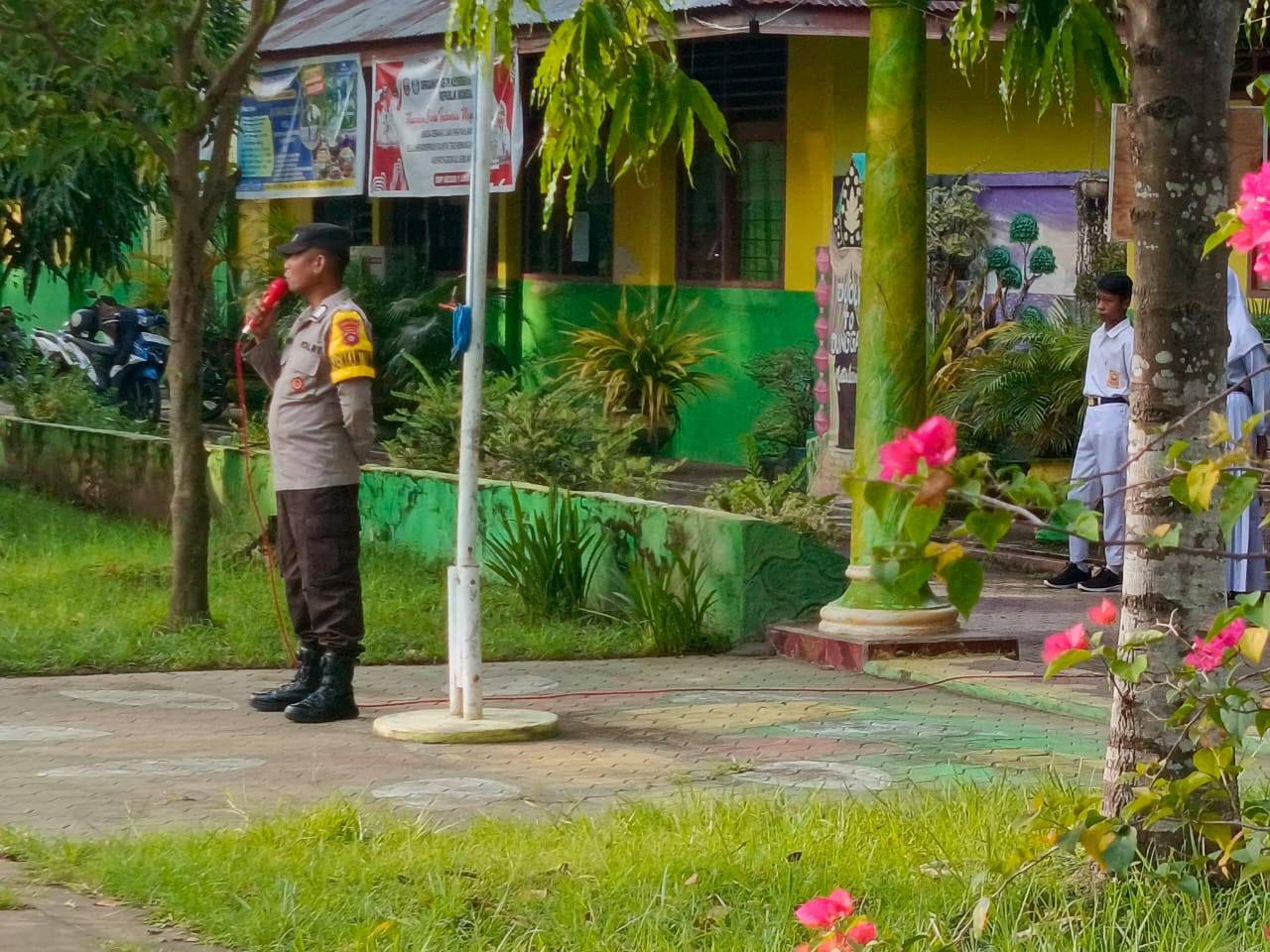Gorutnews.com – Dua anggota Bhabinkamtibmas Kepolisian Sektor (Polsek) Limboto Barat menghadiri sekaligus memberikan pembinaan karakter dalam upacara bendera di SMP Negeri 1 Limboto Barat, Kabupaten Gorontalo, Senin (10/2).