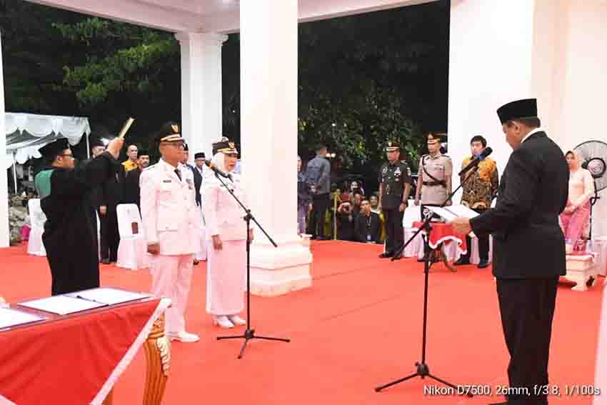 Pelantikan diawali dengan pengucapan sumpah jabatan oleh Bupati dan Wakil Bupati terpilih, dilanjutkan penyematan tanda pangkat dan penyerahan surat keputusan oleh Gubernur.