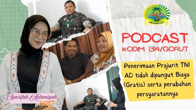 Gorutnews.com – Komandan Kodim (Dandim) 1314/Gorut Letkol Inf Rayner D. R. Wajong menggelar podcast bersama orang tua dan wali siswa Tamtama Gelombang II Tahun Anggaran 2025 di Makodim 1314/Gorut, Jumat (26/9/2025).
