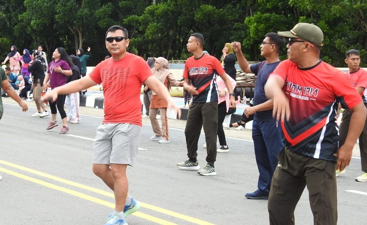 Kegiatan yang berlangsung sejak pukul 07.00, diikuti oleh masyarakat umum, ibu-ibu Persit Kodim, dan Bhayangkari Polres Gorontalo Utara.