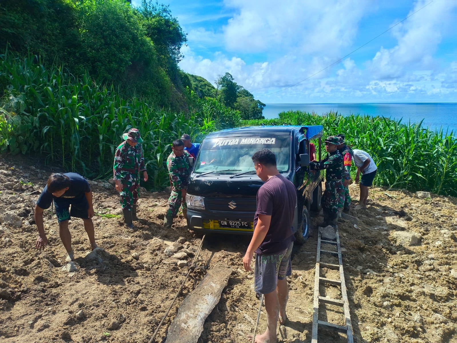 Dengan gotong royong, personel TNI bersama masyarakat setempat membuka akses jalan secara manual menggunakan peralatan seadanya. Jalan yang sempat terputus ini merupakan jalur penghubung antara Dusun Minanga dan Dusun Pasir Putih.