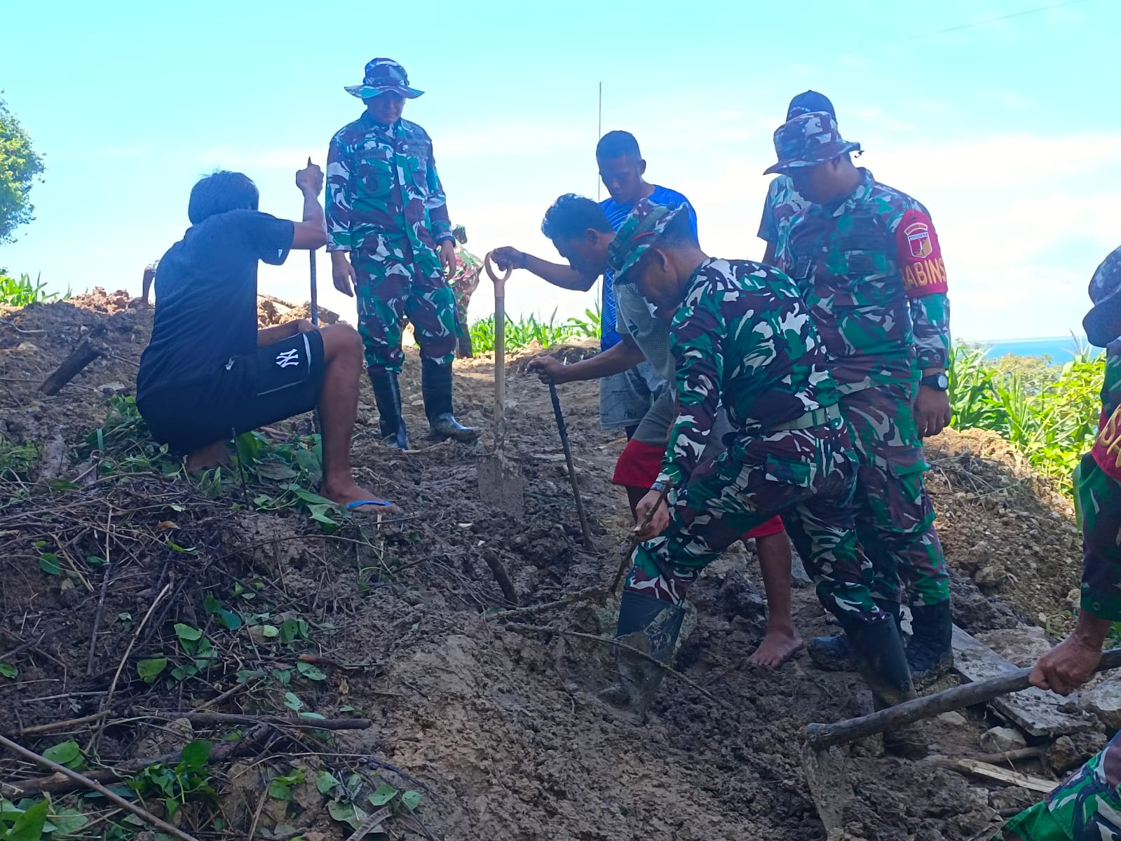 Kegiatan yang dimulai pukul 11.50 Wita ini dihadiri sejumlah unsur TNI dan pemerintahan desa, termasuk Lettu Inf Armin Saleh dari Danramil 1314-02/Atinggola, Kepala Desa Kota Jin Utara Mahmud Mayango, dan Kadus Pasir Putih Rohani Mahmud. Para Babinsa Koramil 1314-02/Atinggola turut berpartisipasi aktif dalam kegiatan pembersihan akses jalan yang tertutup longsor.