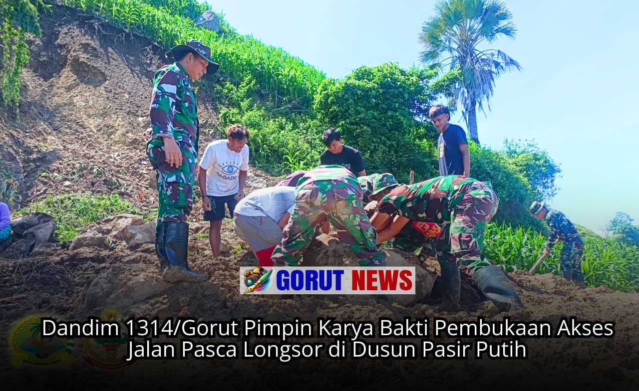 Dandim 1314/Gorut Pimpin Karya Bakti Pembukaan Akses Jalan Pasca Longsor di Dusun Pasir Putih