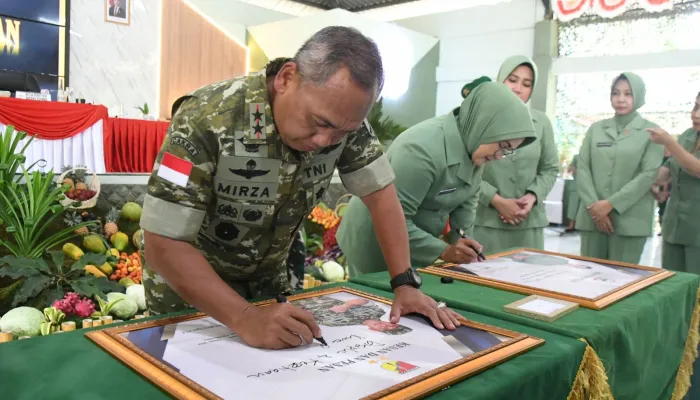Setelah memberikan pengarahan, Pangdam beserta Ketua Persit melakukan penulisan pesan dan kesan, serta menerima pemberian cinderamata dari pihak satuan.