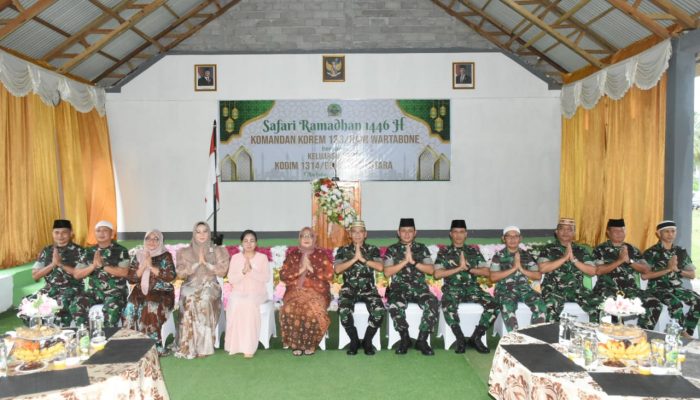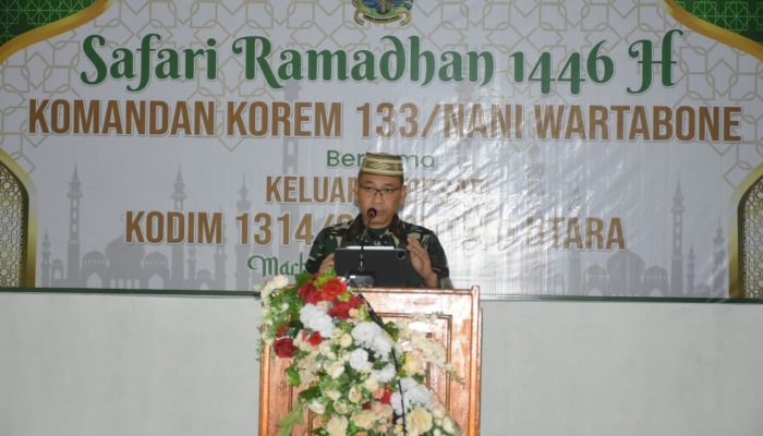 Gorutnews.com – Komandan Korem (Danrem) 133/Nani Wartabone, Brigjen TNI Hari Pahlawantoro, S.Sos., bersama Ny. Rini Hari Pahlawantoro, Ketua Persit KCK Koorcab Rem 133 PD XIII/Mdk, memimpin acara buka puasa bersama dalam rangka Safari Ramadhan 1446 H.