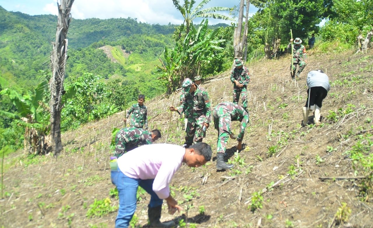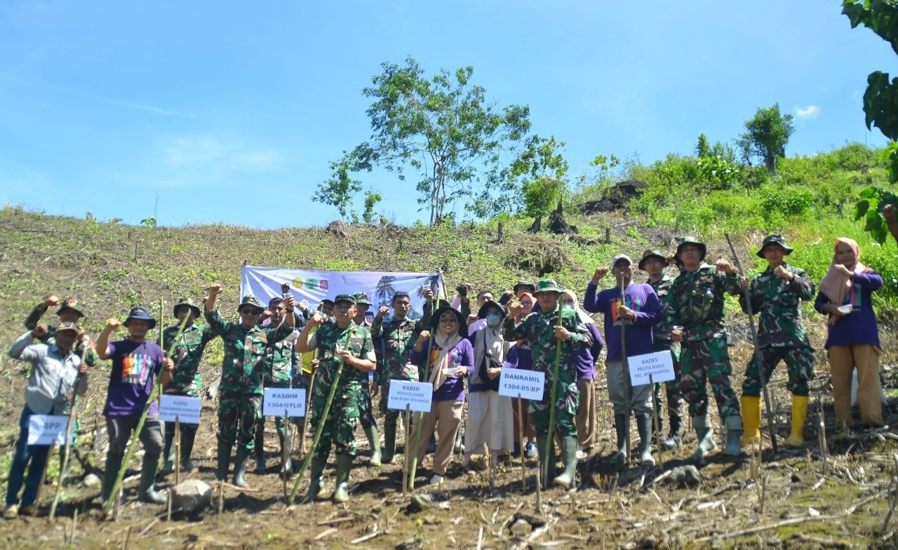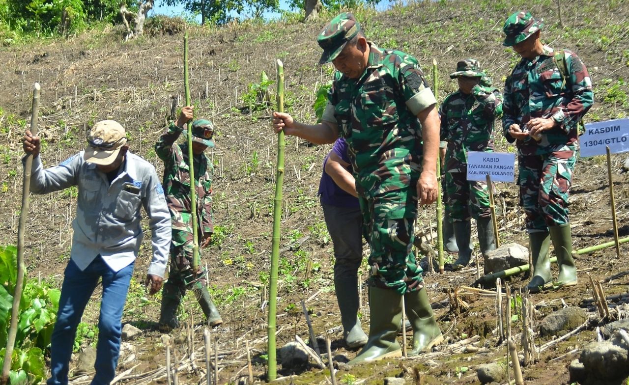 Kodim 1304/Gorontalo – Dalam upaya mendukung swasembada pangan, Kodim 1304/Gorontalo secara aktif terlibat dalam kegiatan gerakan tanam padi gogo Desa Pelita Hijau, Kecamatan Bonepantai, Kabupaten Bone Bolango.