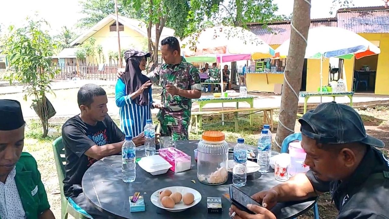Di sela keramaian, Sertu La Sali, prajurit Kodim 1314/Gorut, tampak duduk santai di salah satu lapak makanan di pojok taman. Setelah menjalankan tugasnya sejak pagi, ia memanfaatkan waktu istirahat sambil menikmati suasana.