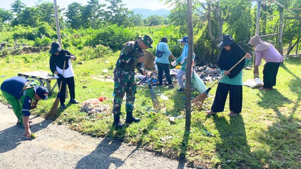 โMelalui kegiatan sederhana ini, kami ingin menegaskan bahwa TNI selalu hadir untuk rakyat dan bersama rakyat dalam menjaga lingkungan tetap sehat dan nyaman,โ ujar Danramil.