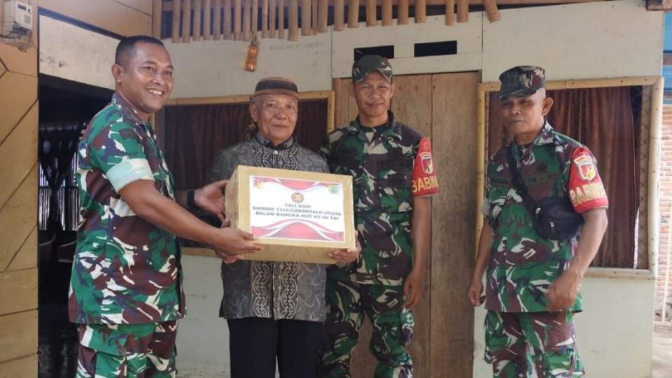 Suasana hangat terlihat saat Danramil 1314-01 Kwandang Lettu Inf Ida Bagus mendatangi rumah tiga purnawirawan TNI, yakni Sertu Purn Aswad Dunggio, Sertu Purn Ahmad Samauna, dan Sertu Purn Asdar.