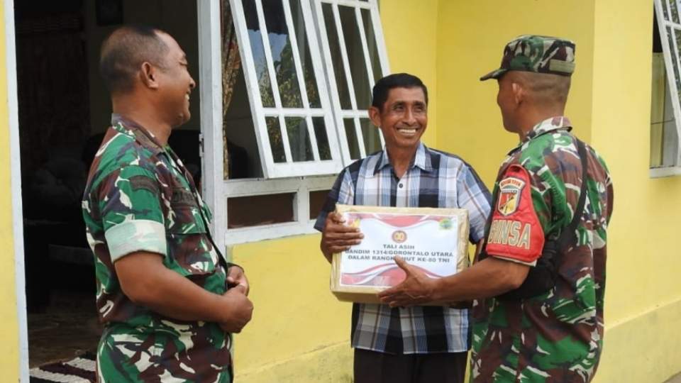 KWANDANG, Gorutnews.com – Menyambut HUT TNI ke-80, Kodim 1314/Gorontalo Utara menggelar kegiatan sosial dengan menyalurkan tali asi kepada keluarga besar purnawirawan TNI, Senin (29/9/2025) sore, di Desa Posso, Kecamatan Kwandang.