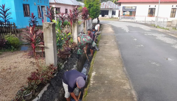 Koramil Atinggola dan Warga Bersinergi Membersihkan Saluran Air Sambut Hari Juang Kartika