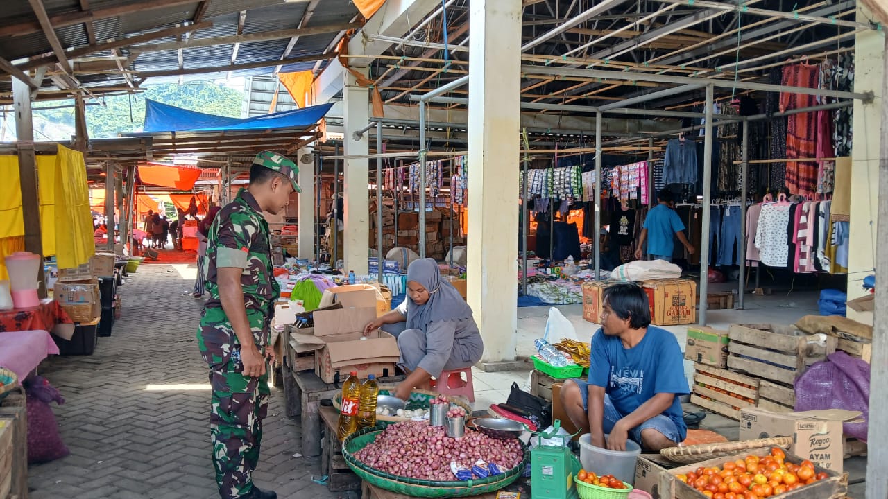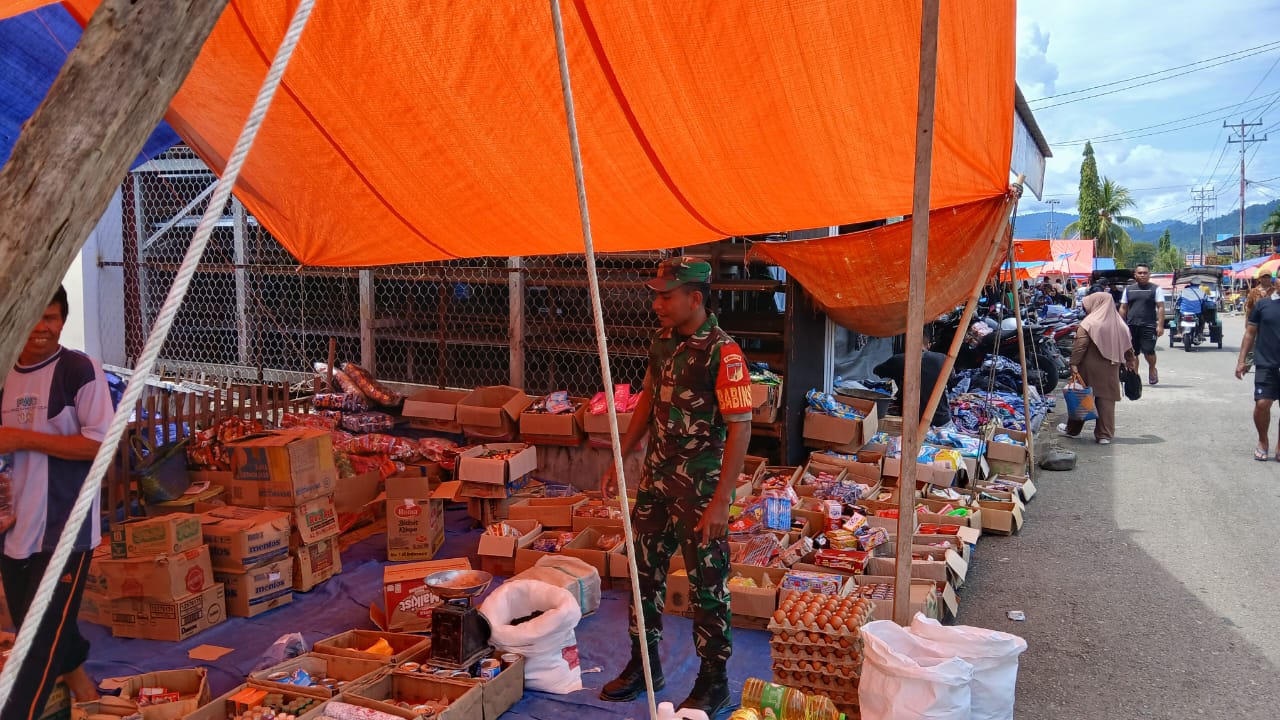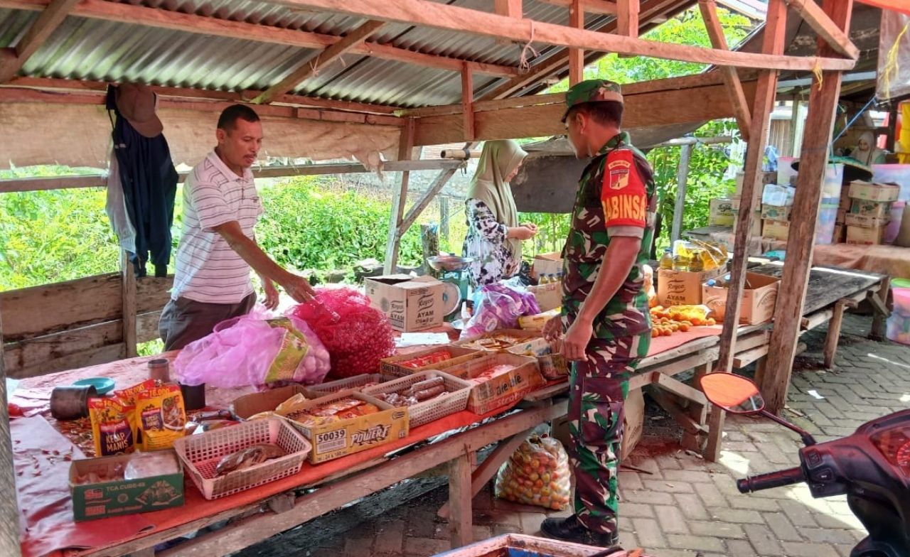 Pengecekan Harga Sembako oleh Praka Melki di Pasar Tolinggula Tengah