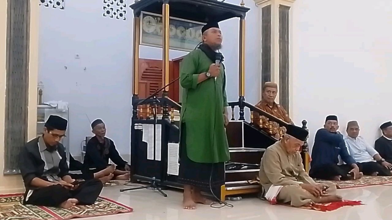 Puncak perayaan berlangsung saat Ustadz Yasin Husain menyampaikan ceramah singkat mengenai sejarah hidup Nabi Muhammad SAW. Jamaah tampak khusyuk menyimak, sementara barisan anak-anak duduk rapi di shaf belakang.