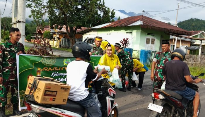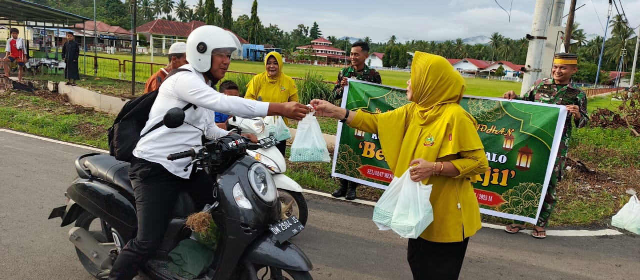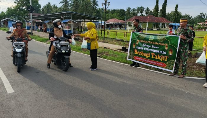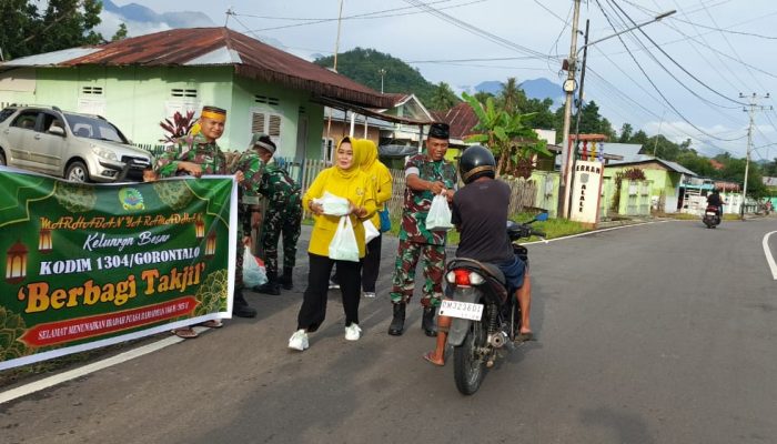 Gorutnews.com – Persit Kartika Chandra Kirana (KCK) Ranting 7 bersama Koramil 1304-06/Suwawa Timur mengadakan kegiatan berbagi takjil kepada masyarakat di depan Koramil Jalan Pasar Minggu, Desa Alale, Kecamatan Suwawa Tengah, Kabupaten Bone Bolango, Senin (10/03/2025) sore. Aksi sosial yang diinisiasi oleh organisasi istri prajurit ini bertujuan untuk mempererat silaturahmi dengan masyarakat sekaligus berbagi kebahagiaan di bulan suci Ramadan.
