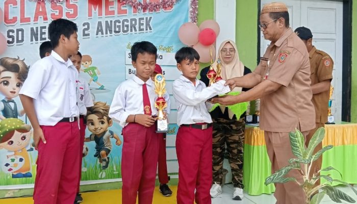 Gorutnews.com – SDN 2 Anggrek, Kecamatan Anggrek, Kabupaten Gorontalo Utara menggelar acara penutupan kompetisi antar kelas (meeting class) yang dirangkaikan dengan penyerahanbBuku Laporan Pendidikan (BLP) Semester Ganjil Tahun Pelajaran 2024/2025 pada Senin (23/12/2024).