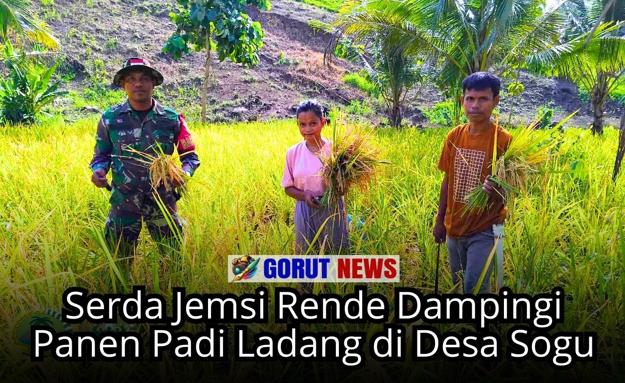 Gorutnews.com – Serda Jemsi Rende, Babinsa Koramil 1314-01/Kwandang melaksanakan pendampingan panen padi ladang (gogo) di Desa Sogu, Kecamatan Monano, Kabupaten Gorontalo Utara, Minggu (9/2/2025).
