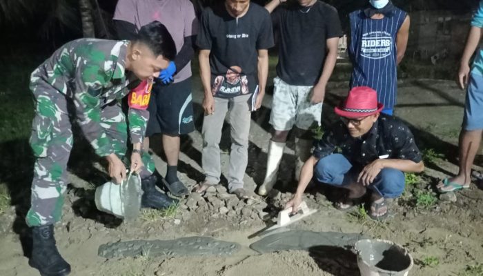 Serma Andri Turut Serta Bantu Pengecoran Jalan di Iloheluma