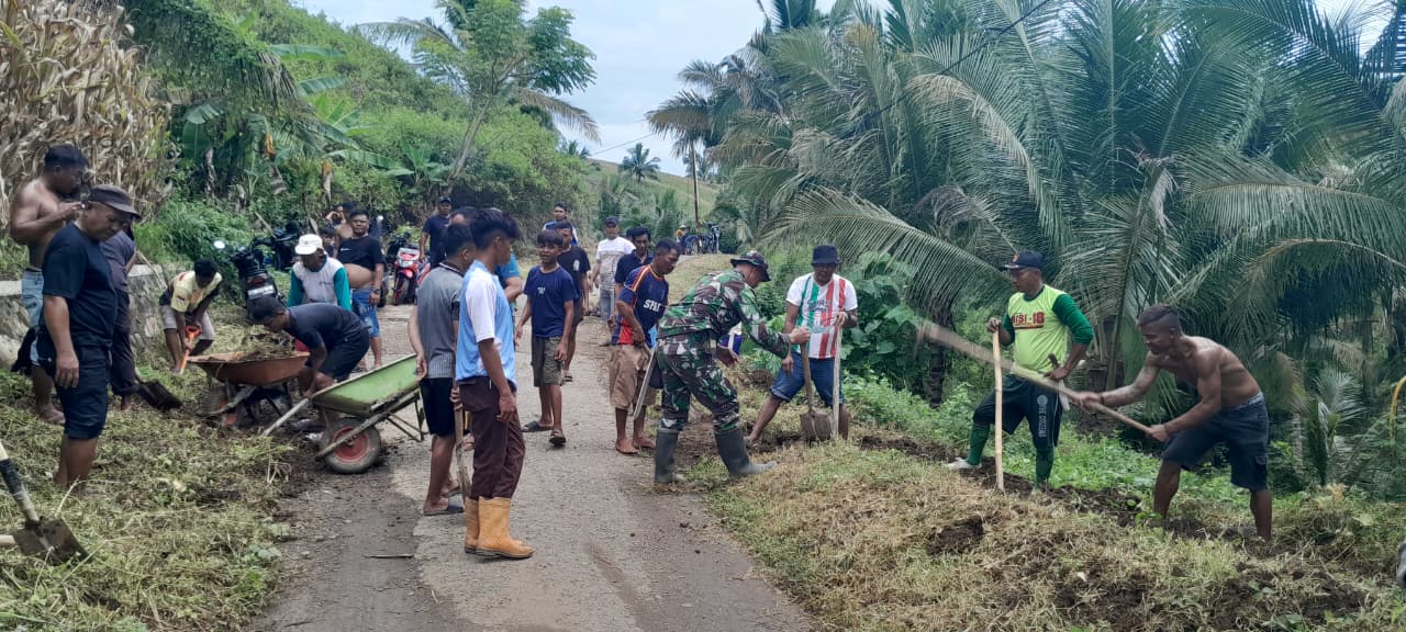 Gorutnews.com – Babinsa 1314-01/Kwandang Serma Ruslang turut serta dalam kegiatan karya bakti di Dusun Gudang Arang, Desa Jembatan Merah, Kecamatan Tomilito, Kabupaten Gorontalo Utara. Kegiatan yang dilaksanakan pada Sabtu, 14 Februari 2025 ini fokus pada penanganan dampak hujan yang melanda wilayah tersebut.