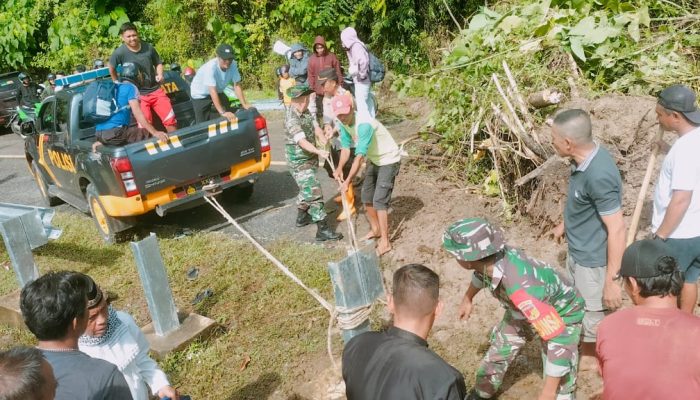 Menanggapi situasi darurat tersebut, Danramil 1314-03/Sumalata bersama Kapolsek Sumalata segera berkoordinasi dengan aparat Desa Kasia untuk melakukan penanganan awal. Kedua institusi mengerahkan personelnya untuk membantu mengamankan lokasi dan memulai upaya pembersihan material longsor.