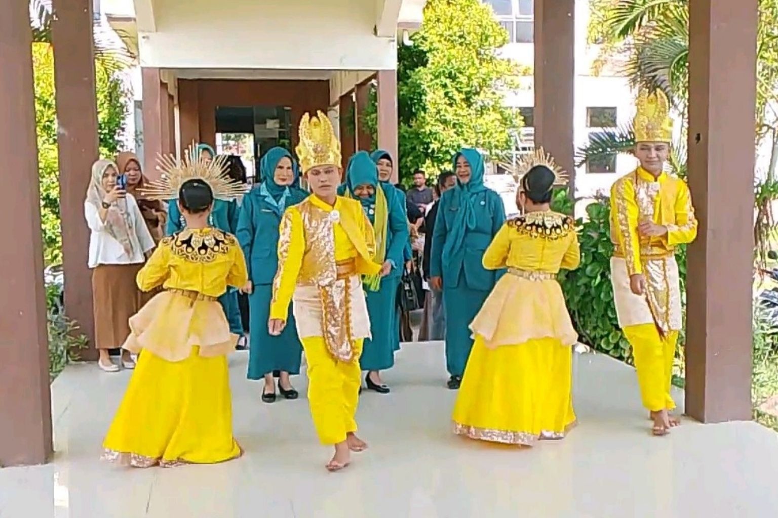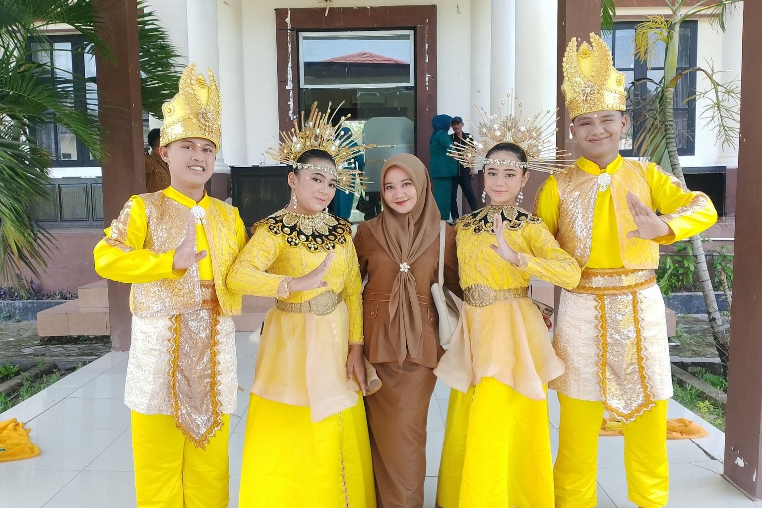 Dalam kesempatan tersebut, empat siswa kreatif asuhan Guru Seni Budaya, Pratiwi Harun, S.Pd., yakni Firman Jafar, Ansar Imran, Mutiara Tarua, dan Valensia Opanto, turut berperan dalam menyambut tamu kehormatan. Mereka mengenakan busana kreasi berwarna kuning keemasan, warna yang identik dengan adat Gorontalo dan sarat makna budaya.