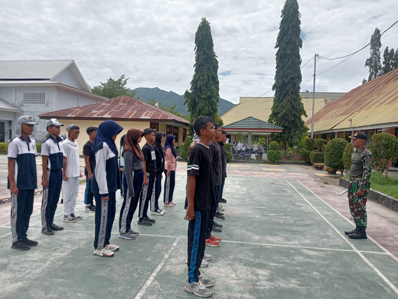 Kodim1304/Gorontalo – Babinsa Koramil 1304-06/Suwawa Timur Serda Ryo Yoga melatih Peraturan Baris Berbaris (PBB) kepada siswa-siswi SMA N 1 Kabila, bertempat di Halaman SMA N 1 Kabila, Kecamatan Kabila, Kabupaten Bone Bolango, Selasa (04/02/25).